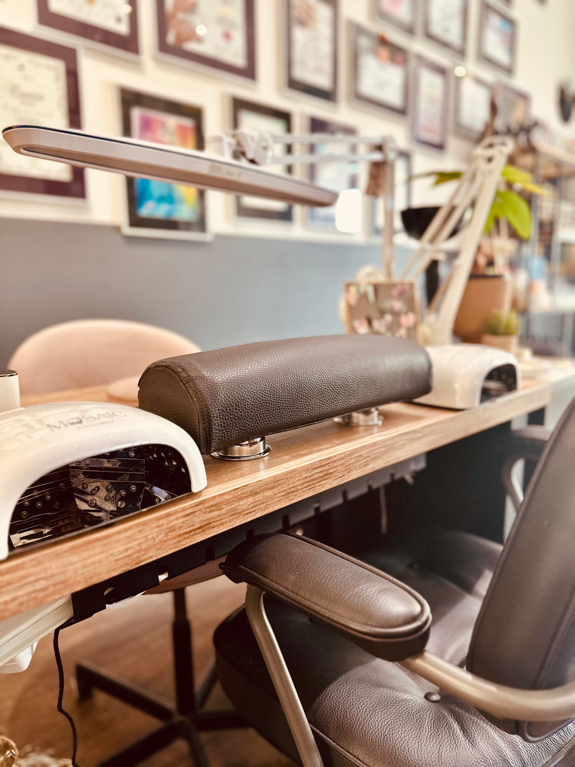 Tyylikäs, valkoinen, pöytään kiinteästi asennettava käsituki