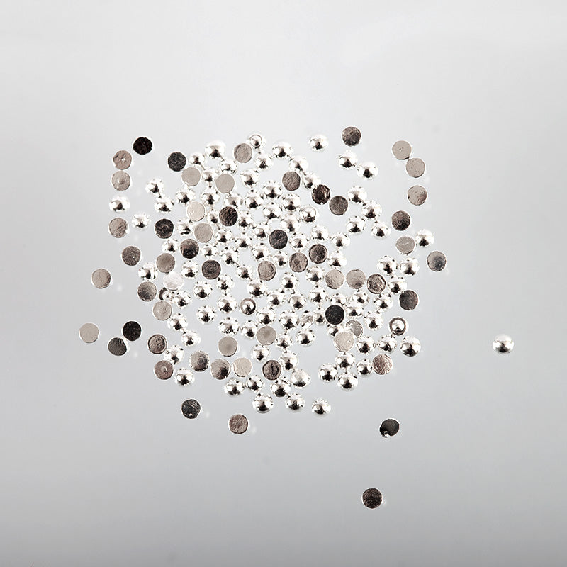 Hopeanvärinen, metallinen puolipallo. Suosittelemme kiinnitykseen Gem geliä.
